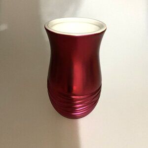 • Beautiful red glass vase for your perfect bouquet of flowers or decorative accent piece.