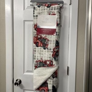 RED TRUCKS Plaid 50x70 Throw Blanket Christmas Tree by Dream Home Sherpa Back