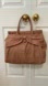 approx 17”-21”.Magnetic snap closure, ruffled trim along top line. Fully lined interior in pink fabric with zip pocket and 2 slip packets. Made in Italy.