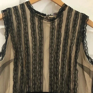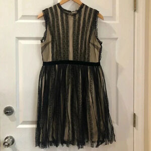 RED VALENTINO Black lace sleeveless midi dress with tan lining zip up size 10