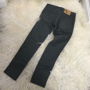 Grey Red Valentino low-rise straight-leg jeans with tonal stitching, five pockets and zip closure at front.