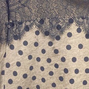 FlLASH SALE!! RED Valentino polka dot tee with beautiful lace yoke and sleeves. Finish this off by pairing with slim fitted trousers or jeans. Two small stains on the right side of the tee (pic 4). Overall condition is good. No holes and no rips. Lace is still in excellent conditions. 100% modal. Slim silhouette. Italian sizing.