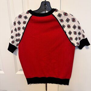 Short Sleeved red, white and black RED Valentino sweater. Originally purchased at Saks Fifth Avenue.