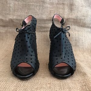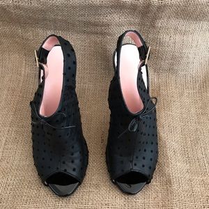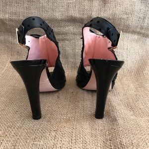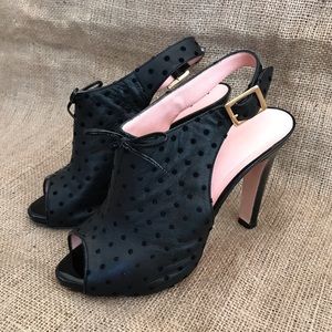 RED Valentino Slingback Heels Black Leather with Velvet Polka Dots Size 6.