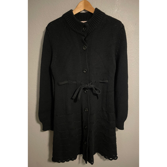 RED Valentino Sweater Womens 44 Black Wool Belted Button Front Long Cardigan