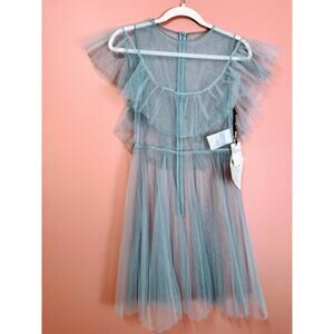 RED Valentino Tulle Ruffle Overlay Mini Dress in Blue Size 40/Small