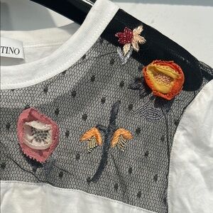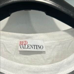 RED Valentino White Short Sleeve spring summer Tee with Floral Embroidery large
