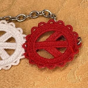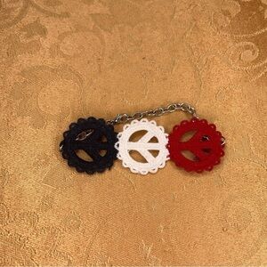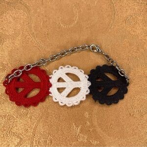 RED WHITE BLUE PEACE SIGN BRACELET PATRIOTIC HANDMADE SILVER