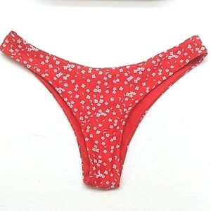 RED WHITE FLORAL HI-CUT HIPSTER BIKINI BOTTOMS SIZE MEDIUM NWOT