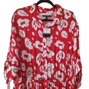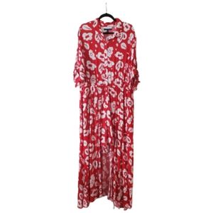 RED & WHITE ☆ TROPICAL FLORAL ☆ WALKTHROUGH MAXI ☆ NWT
