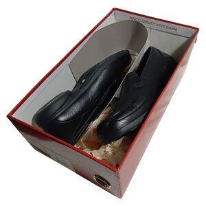 These vintage Red Wing Oxford shoes offer comfort and style, perfect for any wardrobe. They are new in box, made in the 1990s, and feature a sleek black design. Ideal for those who appreciate classic footwear.