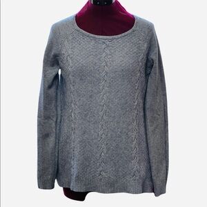 RED ~ Women's super soft pullover sweater. Size XL. Pastel blue. Long sleeves. Scoop neck. Hi-low hem. Ribbed cuffs. Stretchy with braided cable design woven into the front yarn. Very soft. Style # C631709019M.