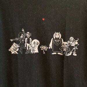 Short sleeve black women's T shirt with picture of characters from "Undertale" video game. Very soft material.
