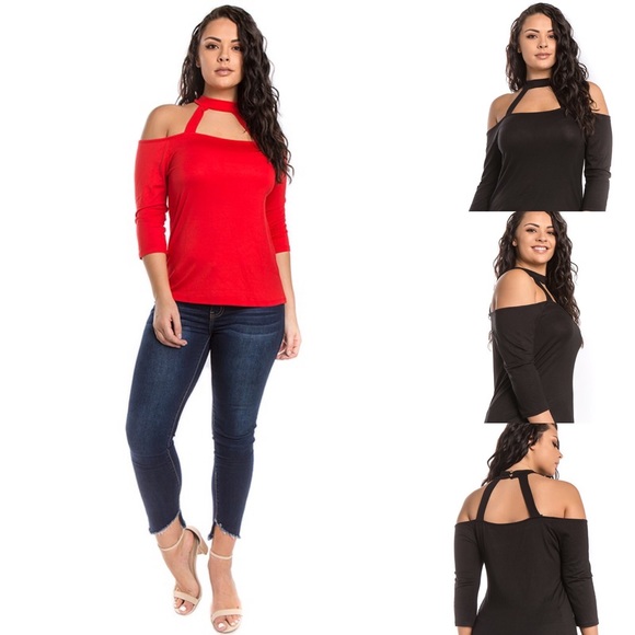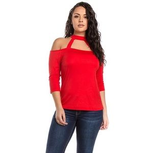 RED-Cold Shoulder Top