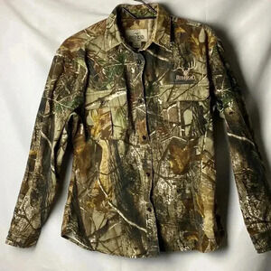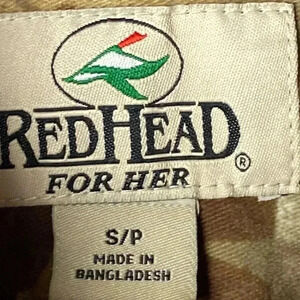 REDHEAD FOR HER WO SIZE SMALL CAMOUFLAGE SHORT/JACKET BUTTON FRONT POCKETS CLEAN EXCELLENT CLEAN CONDITION LENGTH MEASURES APPROX 26” FROM SHOULDER TO HEM SLEEVES MEASURE APPROX 22” CHEST MEASURES APPROX 20” FROM SIDE TO SIDE