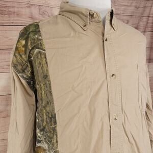 REDHEAD LONG SLEEVE BEIGE KHAKI CAMO HEAVY BUTTON UP SHIRT MENS SIZE 2XLT TALL