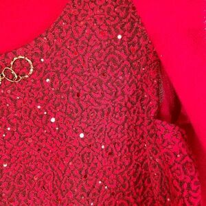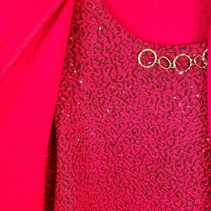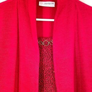 RED MOCK 2 PIECE SWEATER STRETCH PETITE MEDIUM