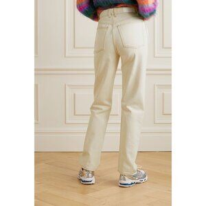 Keywords: high rise jeans, RE/DONE denim, straight leg, rigid cotton jeans, vintage inspired jeans, neutral cream jeans, 70s style, casual denim, sustainable denim, minimal wardrobe, off-white jeans, ethical fashion, timeless basics, spring denim, fall capsule, made in Mexico