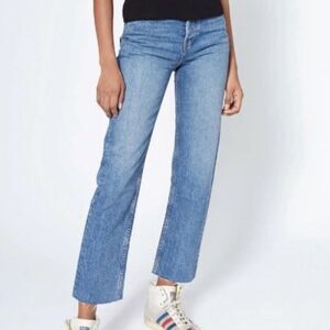Fitted through thigh with a straight leg down to your ankle. This style is running small. Please take one size larger than your usual RE/DONE size.