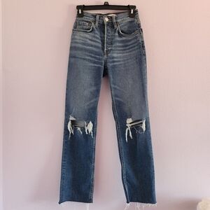 RE/DONE 70's Stove Pipe Dusk Destroy High-Rise Cropped jeans Size 23
