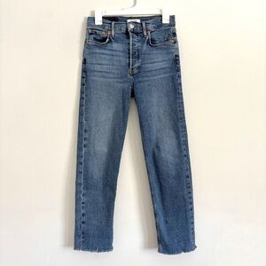 RE/DONE 70s Stove Pipe Jeans, women’s size 26! Straight leg, raw hem, hidden button fly.