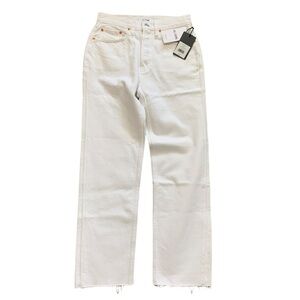Top Rated Seller, Same Day/Next Business Day Shipping RE/DONE Size 26 Color White 70’s New With Tags Stove Pipe Mid Rise Straight Leg Cropped Inseam Classic 5-Pocket Style With Button Fly Rigid Denim
