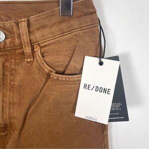 RE/DONE 70s Straight Jeans. Wash: Washed Terracotta. Straight leg style with full length inseam. Faded, earth-toned clay wash in comfort stretch denim, a zipper fly, and a finished hem. Brand new with tags. Size 25.