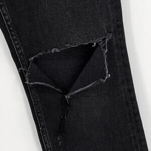 RE/DONE 70s Straight Jeans Women’s Size 24 Black Washed Noir Distressed Hole