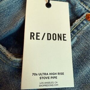 RE/DONE 70’s.ULTRA HIGH RISE STOVE PIPE WORN CRYSTAL BLUE JEANS SIZE 26 NWT