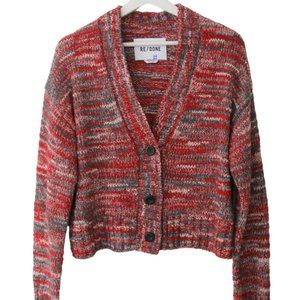 RE/DONE 90's Crop Oversized Cardigan Sweater Space Dye Red Small
