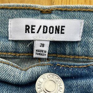 New RE/DONE 90s HIGH RISE ANKLE CROP BUTTON FLY JEANS WOMEN’S sz 28 Frayed Hem Destructed Denim