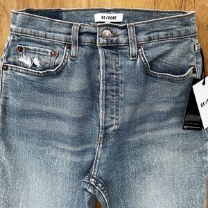 RE/DONE 90s HIGH RISE ANKLE CROP BUTTON FLY JEANS WOMEN’S sz 28 Frayed Hem NWT