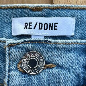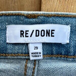 New RE/DONE 90s HIGH RISE ANKLE CROP BUTTON FLY JEANS WOMEN’S sz 29 Frayed Hem Destructed Denim