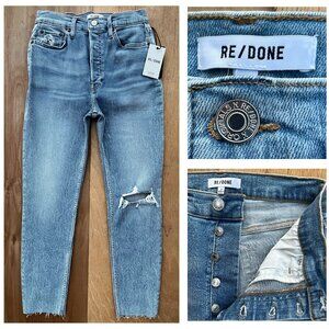 RE/DONE 90s HIGH RISE ANKLE CROP BUTTON FLY JEANS WOMEN’S sz 29 Frayed Hem NWT