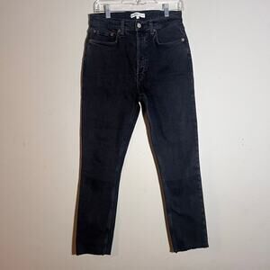 RE/DONE 90's High Rise Ankle Crop Jean Faded Black Stretch Denim Size 28 Raw Hem