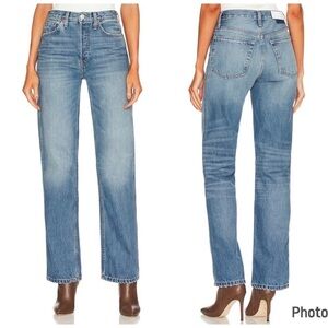 RE/DONE 90s High Rise Loose Jeans Button Fly Raw Hem Medium Wash Size 23