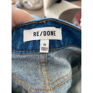 RE/DONE 90s High Rise Loose Straight Leg Jeans Destroyed Broken Blue size 24