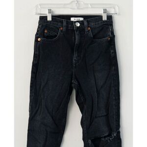 RE/DONE 90s High Rise Loose Jeans in Washed Black with Rips Size 23