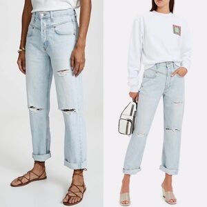RE/DONE 90s Light Wash Denim High Rise Western Double Yoke Straight Leg Jeans 26
