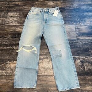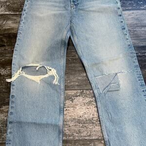 RE/DONE 90s Low Slung Crop Jeans Womens 26 Blue Breezy Indigo Ripped Distressed