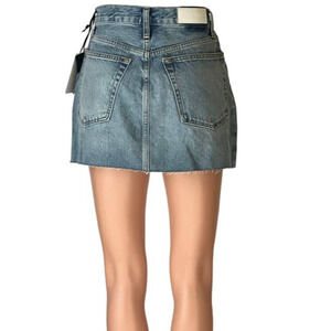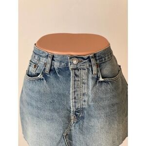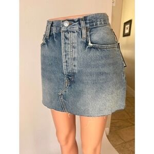 This NWT RE/DONE 90s Original Mini Skirt features five-pocket styling, a button fly, and a frayed hem.