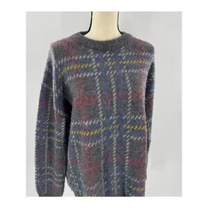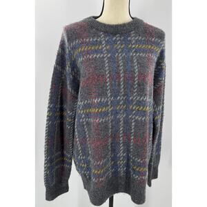 RE/DONE 90's Oversized Crewneck Gray Plaid Wool Sweater Large