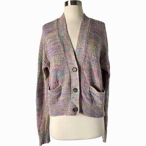 RE/DONE 90s Oversized Crop Cardigan Rainbow Knit Multicolor Size S