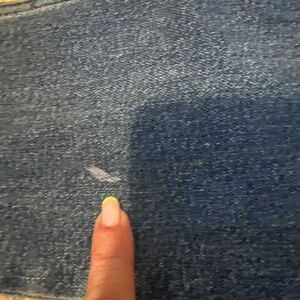 See photos - two areas thred is lighter in color. And the label on back is peeling a bit. Size 25