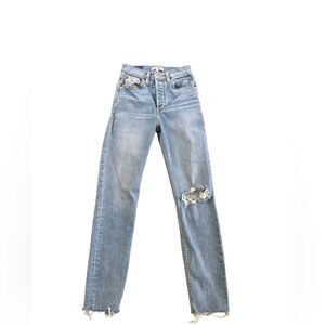 RE/DONE 90s High Rise Ankle Crop Worn Bright Blue Jeans size 25