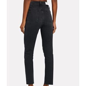 RE/DONE 90s High Rise Ankle Slim Fit Noir Black Denim Jeans Button Fly Size 25. Excellent condition. Cropped for an ankle-barring fit, the label's 90s high-rise jeans are cut for a skinny fit in their Faded Coal stretch denim. Belt loops. Button fly. Five pocket styling.
