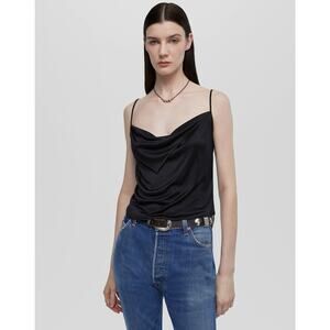 Featuring a draped cowl neckline, thin adjustable straps, and a relaxed silhouette. Sleeveless. Pullover style. Crafted in soft, fluid fabric. Material: 100% polyester. Fits true to size