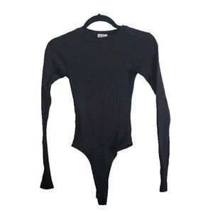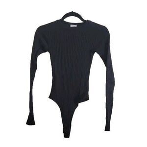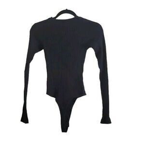 RE/DONE Black Ribbed Bodysuit Crewneck Long Sleeve Size XS