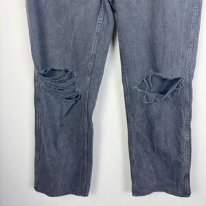 Nice black washed (almost gray) denim jeans by Re/Done. High waisted. Button fly. Ankle length. Distressed rips on the knees. Some wear but great preowned condition. Women’s size 31 (12).