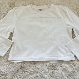 RE/DONE Cropped Varsity Tee in Optic White Cream Stitch Size S